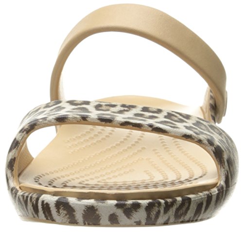 Crocs Cleo V Graphic Sandal W Infradito e Ciabatte da Spiaggia, Donna, Beige (Leopard/Black), 36/37