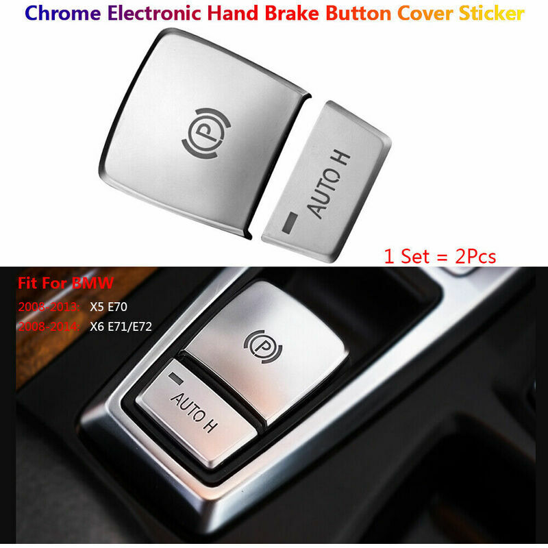 Adatto per BMW Per BMW X5 E70 (2008-2013) Per BMW X6 E71/E72 (2008-2014) Applicazioni: Auto Adesivo coperchio pulsante freno a mano elettronico interno Materiale: ABS cromato Colore: argento Include: 1 set (adesivo coperchio 2 pezzi)