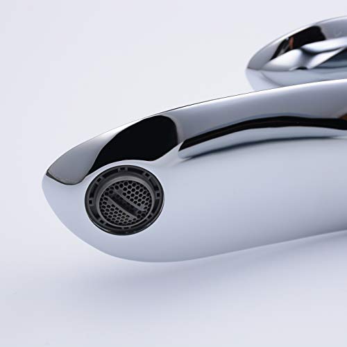 【Materiale Sicuro e ad Alta Qualità】Questo rubinetto per lavabo da bagno è fatto di 59 ottone ad alta qualità con rivestimento di cromo nichelato. La placcatura in nichel migliora la resistenza alla corrosione e aiuta a mantenere lucentezza a lungo termine, non piombo e mercurio, quindi può offrire un rubinetto elegante e bello che è in grado di ottenere acqua più pura. Contenuto di piombo basso può evitare efficacemente danni di piombo eccessivo alla salute umana
