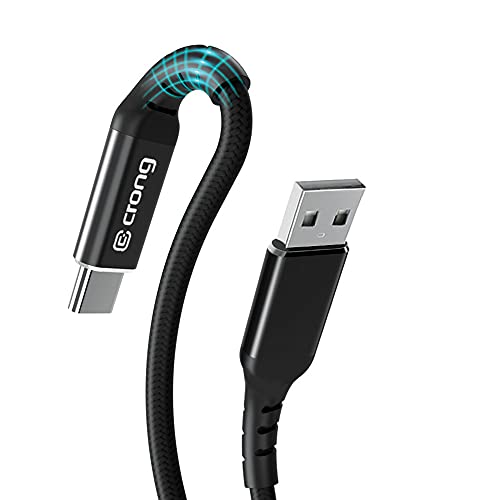 Crong Armor Link - Cavo di ricarica + cavo dati, cavo di ricarica USB A a USB-C, trasferimento dati 480 Mbps, in nylon elastico, 150 cm, colore: Nero
