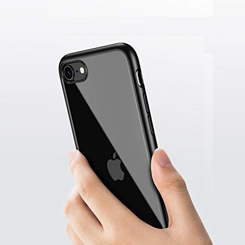 Crong - Cover trasparente per iPhone SE 2020/8/7, compatibile con ricarica wireless, design ibrido, paraurti flessibile + copertura antigraffio trasparente sul retro del dispositivo, colore: nero