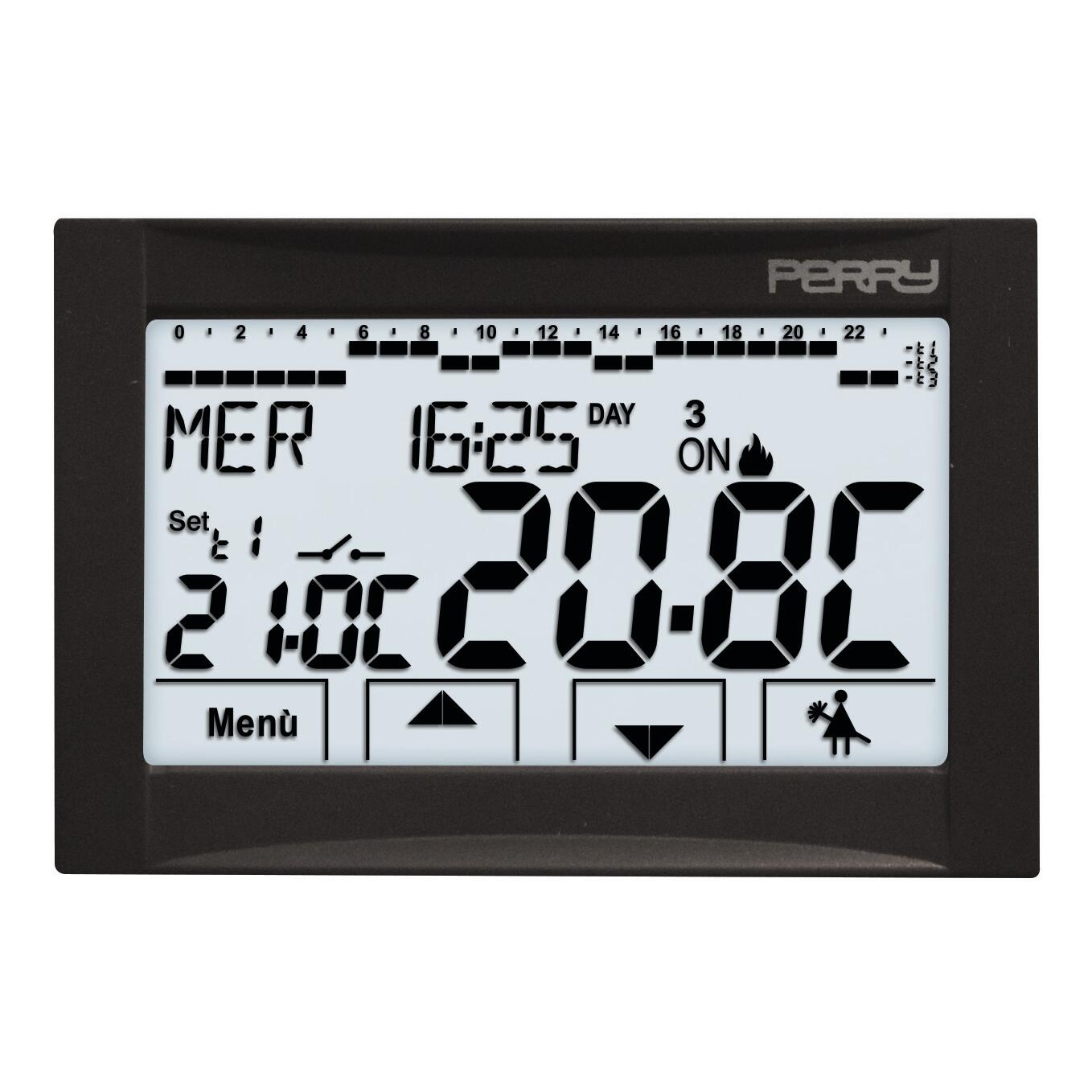 Display LCD retroilluminato. Indicato per la programmazione delle fasce orarie di accensione e spegnimento degli impianti di riscaldamento