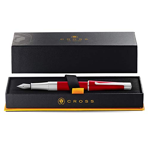 Questa elegante penna stilografica CROSS è presentata in un rosso audace che la rende bella da guardare ma ancora più bella con cui scrivere/si trova comodamente in mano