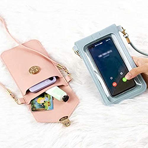 1. Adatto per vari modelli di telefono: è possibile mettere il telefono cellulare nella tasca posteriore per evitare di cadere quando attività all'aperto, campeggio, shopping, ecc... e utilizzare il telefono direttamente sulla borsa attraverso i lati in plastica trasparente.