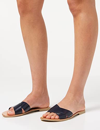 FIND Flat Crossover Leather - Sandali a Punta Aperta Donna, Blu (Navy), 37 EU