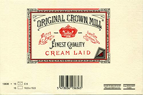 Crown Mill - Set Classic Line composto da 15 cartoncini e 15 buste da lettera in carta vergata, formato C6, colore: Panna