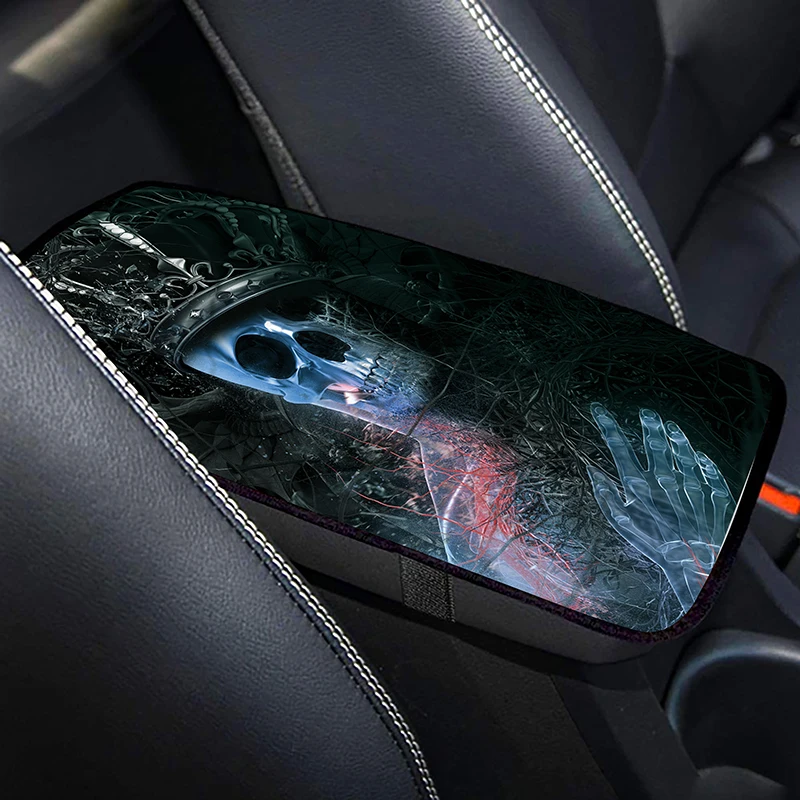 JUN TENG Crown Crystal Skull Design Car Armrest Pad 1PCs Men Boy Universal Decoration Accessories Rubber Material for Citroen