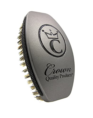 Crown Quality Products 360 Sport Wave Caesar 2.0 Spazzola per capelli con setole di cinghiale, media, grigio fumo, impugnatura antiscivolo, design impermeabile, la spazzola Ultimate 360 Wave