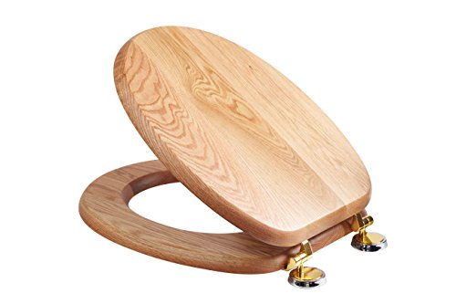 Croydex Bloomfield - Tavoletta WC Classica, in Legno di Quercia e cardini in Ottone
