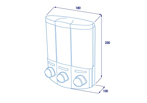 Supporto da parete rimovibile per un facile riempimento, dimensioni del prodotto: altezza 230 mm x larghezza 180 mm x profondità 100 mm