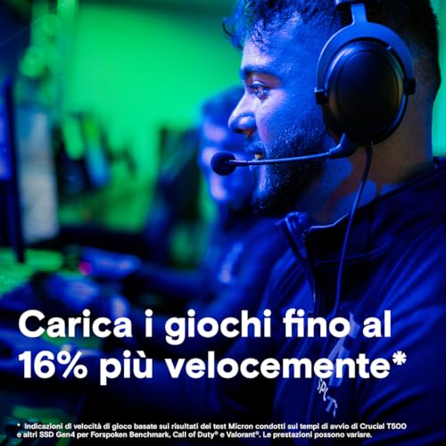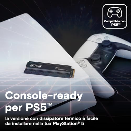 Crucial T500 SSD 2TB PCIe Gen4 NVMe M.2 PS5 SSD Interno Gaming con Dissipatore, Fino a 7400MB/s, Compatibile con PlayStation 5, Notebook e PC Desktop, Microsoft DirectStorage - CT2000T500SSD5
