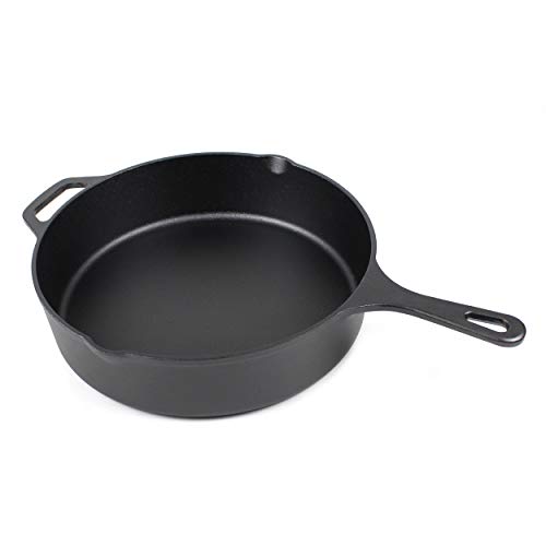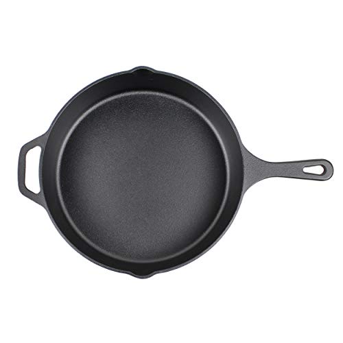 Set di padelle in ghisa pre-stagionate da 30,5 cm, tra cui 1 coperchio in vetro, 1 supporto in silicone per manico caldo, 1 supporto per manico caldo in silicone, 1 raschietto;