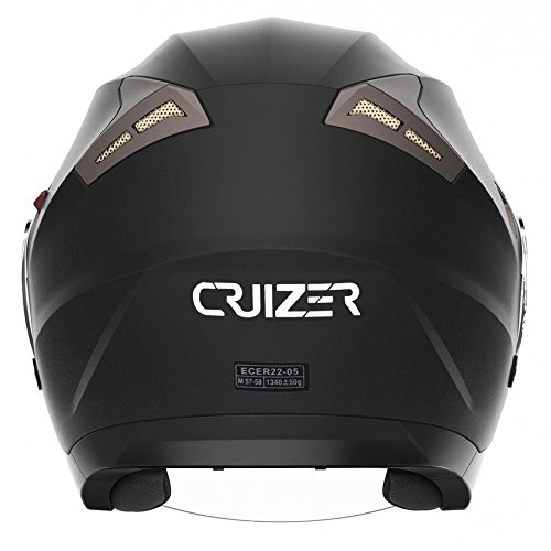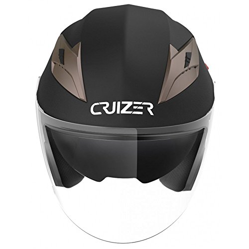 CRUIZER - Casco jet omologato di colore nero opaco, con doppia visiera, interno amovibile e lavabile, estrattori di aria calda sul retro (XL)