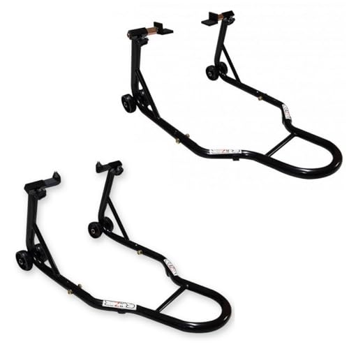 CRUIZER - Cavalletti per Moto Anteriore con attacchi a Coni + Posteriore a Piastre, Regolabili e con Ruote sottostanti