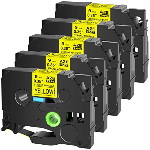 Cruxer Nastro adesivo extra resistente, compatibile con Brother TZe S621, 9 mm, testo nero su nastro giallo, per etichettatrici PT Cube PTE550, PTP750, PTD210, PTD450, PTH110, PTD400AD, PT710BT,