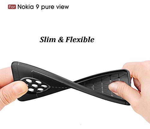 Cruzerlite Nokia 9 PureView Custodia, Flexible Slim Case with Leather Texture Grip Pattern And Shock Absorption TPU Cover for Nokia 9 PureView (Red)