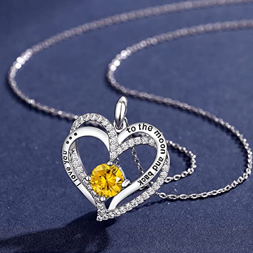CRYSLOVE I Love You to the Moon and Back Collana Birthstone per Donne in Argento 925 con Zircone Compleanno Pendente Gioielli Regalo di compleanno/anniversario/festa della mamma