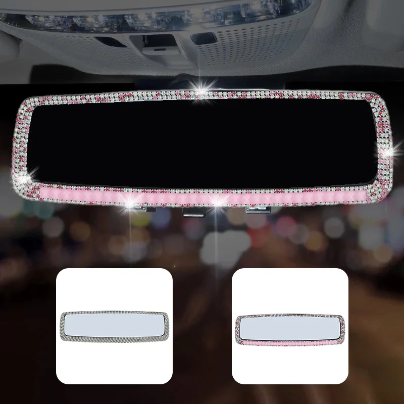 Crystal Car Interior Rearview Mirror Decor Charm Bling Diamond Ornament Rear View Mirror Cover Girls Women Interior Accessories