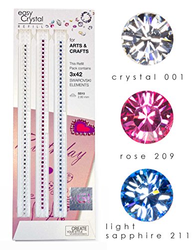 Easy Crystal Striscie ricariche per CARTA & BRICOLAGE con 126 (3x42) cristalli SWAROVSKI (Misura: SS10, Colore: crystal 001, rose 209, light sapphire 211)