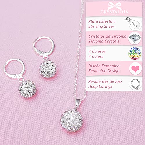 CRYSTALINA Regali per le Donne, Set di Gioielli in Argento da Donna, Collana e Orecchini con Ciondolo, Gioielli da Donna in Argento S925 e Zirconi Colorati, Regali Originali per le Donne (BIANCO)