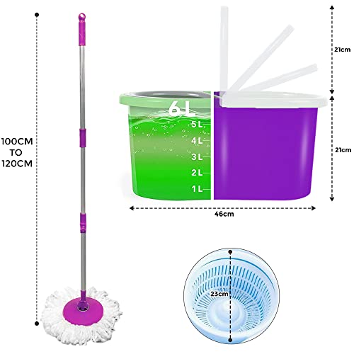 Crystals - Secchio per mocio rotante a 360°, per le pulizie di casa, con due panni mocio inclusi, colore viola