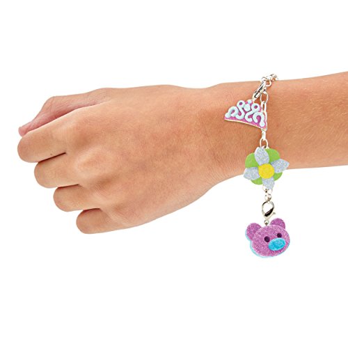 Include stampi per creare 15 ciondoli: 1 collana con 2 ciondoli, 1 braccialetto con 4 ciondoli, 3 anelli, 2 fermagli per capelli, 1 etichetta per borsa, 2 ciondoli per scarpe e 1 portachiavi