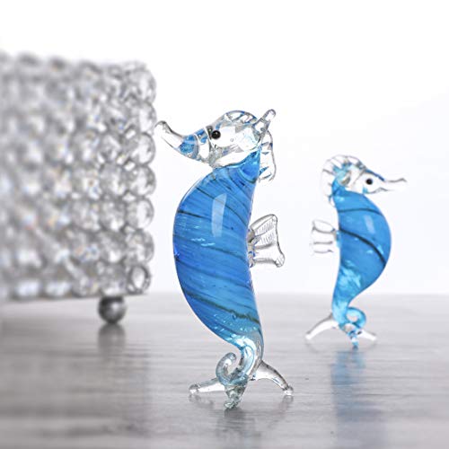 Crystalsuncatcher Handmade Art Glass soffiato cavalluccio marino blu Hippocampus Animal Figurine ...