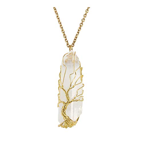 CrystalTears Collana Albero della Vita Ciondolo Cristallo di Rocca Gemma Naturale per Donna in Colore di Bronzo Oro Oro Rosa Fatto a Mano Regalo per Ragazza Amica