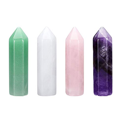 CrystalTears Set di 4 Cristalli Curativi Pietre Naturali 56mm Chakra a Punta Pietre Lucide Decorative Esagonale di Ametista Quarzo Avventurina Regalo per Terapia Reiki