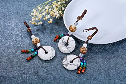 CrystalTears Portachiavi con gemma a forma di ciambella, con 7 perline chakra, per yoga, energia, guarigione, Howlite bianca (Bianco) - FPDE0733