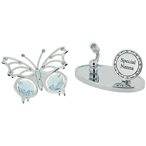 Crystocraft Nanna "Special", con supporto a forma di farfalla placcata in argento con cristalli Swarovski
