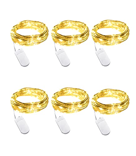 Cshare Catena di luci a LED a batteria, 6 pezzi, 2 m x 20 LED, IP67, impermeabile, per feste, Natale, Halloween, bottiglia di luci (bianco caldo)