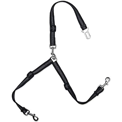 Csheng Guinzaglio Doppio per Cani Traino 2 Cani Cintura Sicurezza Cani Cintura per Cani Auto Imbracatura di Sicurezza per Cani Imbracature per Cani Cinture di Sicurezza per Cani Black