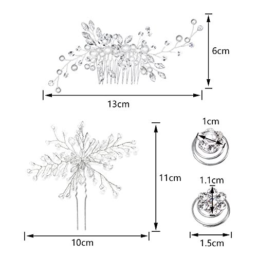 Design Elegante: I prodotti nel set possono essere usati come accessori per capelli per il tuo matrimonio, sono fatti di strass, perle finte, ecc., Che sono squisiti, eleganti e semplici per rendere la tua pettinatura più attraente.