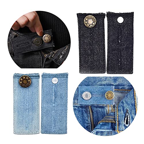 Materiale di alta qualità: l'bottone allarga pantaloni è realizzato in denim di alta qualità, elastico, bottoni in silicone e metallo, che sono robusti e durevoli per un uso a lungo termine.