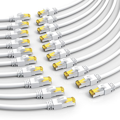 CSL-Computer Cavo di rete CAT 7 Cavo Ethernet Gigabit LAN 10000 Mbit s con spina RJ 45 0,25m x 20 Bianco