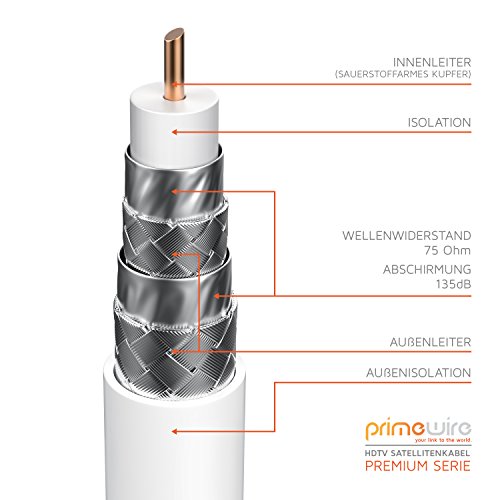 Nome del modello: Cavo Premium TV satellitare Primo Wire 2.0m / connettore F (maschio) al connettore F (maschio) | La trasmissione di segnali analogici e digitali e DVB-S, DVB-S2 e via cavo | stabilisce un collegamento affidabile tra il connettore / uscita multimediale e il dispositivo ricevente come router ricevente / cavo modem / via cavo / satellitare.