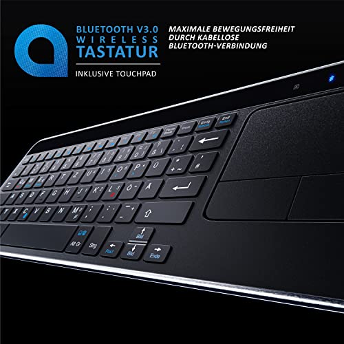 CSL-Computer Tastiera Bluetooth QWERTZ sottile con pannello a sfioramento e controllo gesti multi-touch Nero