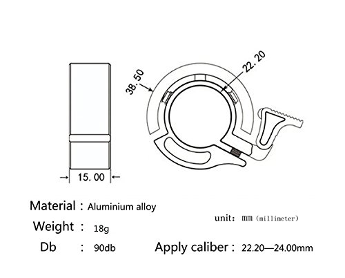 Il campanello per bicicletta classico si adatta su manubri con diametro esterno di 22,2-24 mm. Il campanello ad anello di alluminio per bicicletta è progettato specificatamente per mountain bike e bici da strada come campanello di allarme di sicurezza. Il campanello per bici si adatta sulla maggior parte delle mountain bike e bici da strada molto bene ed emette un suono chiaro che può essere sentito facilmente.