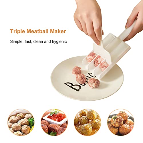 Csuntikulo Polpette Maker, Stampo per Hamburger per polpette Fai da Te,Cucina Tripla Polpette Maker,Cucchiaio Multifunzione per Gelato, Accessori da Cucina