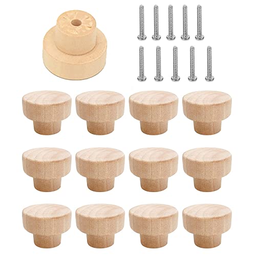 CTAKPOWE 12 Pezzi Manopole per mobili, Pomelli per mobili in legno con Viti, Pomelli per guardaroba, cucina, cassettiere, ecc (35 x 26 mm)