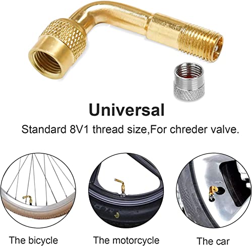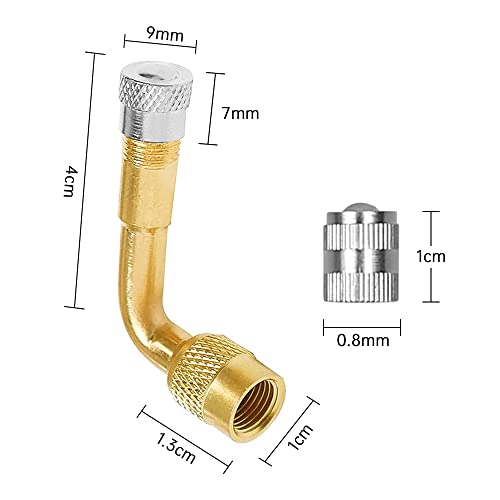 CTDMJ Prolunghe per Valvola, in Rame, Adattatore per Valvola Adattatore di Prolunga per Valvole Pneumatici, E 4 Tappi per Valvole per Valvola per Auto, Moto, Scooter (90 Gradi)