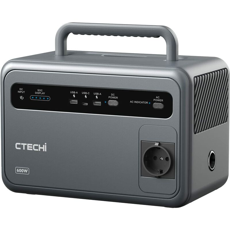 Descrizione prodotto PICCOLA MA POTENTE Batteria LiFePO4 con oltre 2000 cicli di vita Tecnologia BMS di alta qualità COSA RICEVI? 1* Stazione di alimentazione portatile CTECHi GT600 1* Adattatore di alimentazione AC 1* Cavo di ricarica per auto DC 1* Manuale d'uso Note - Quando i tasti di controllo sono accesi, anche se non viene caricato alcun dispositivo, viene registrato un certo consumo di energia inattiva. Pertanto, si consiglia di spegnere i tasti di controllo dopo l'uso per evitare il consumo di energia. - Non è compatibile con dispositivi che richiedono più di 600 W di potenza, come forni a microonde, grill elettrici, veicoli elettrici, compressori d'aria e altro. -Se il dispositivo ha una potenza eccessiva all'avvio, la protezione da sovraccarico si attiva e il dispositivo non può essere utilizzato. Grazie per la vostra comprensione. FAQ Q1: Quali dispositivi possono essere caricati/alimentati con il GT600? Grazie all'inverter CA da 600 W (900 W di picco), questo generatore