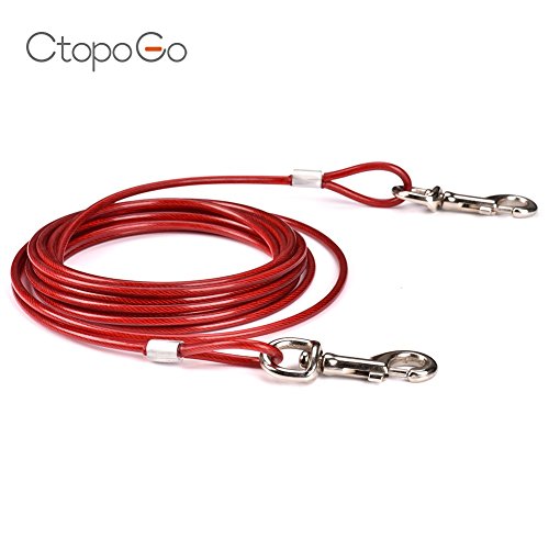 CtopoGo 10ft/16ft/33ft Dog Tie out Cable, Acciaio Inossidabile Pet Dog Tie out Cable - Double Head Dog Leash Campeggio Outdoor Tie-out Cable for Medium Large Pet Dogs (5m, Rosso)