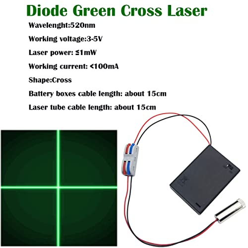 CTRICALVER 1 Pcs 520nm 3-5V Croce Verde Laser Modulo, Focus Regolabile Laser Testa, 1 pcs morsetti elettrici, 1pcs Batterie AA Custodia (Forma della sorgente luminosa: croce)