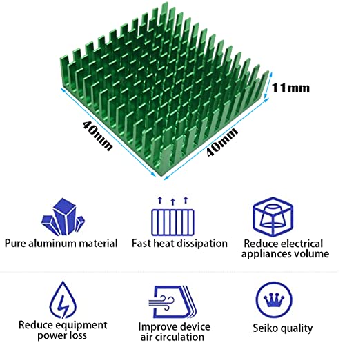 CTRICALVER Dissipatore di calore 40 x 40 x 11 mm + nastro adesivo termico conduttivo, Alluminio dissipatore di calore per raffreddamento stampanti 3D (4 pcs, verde)