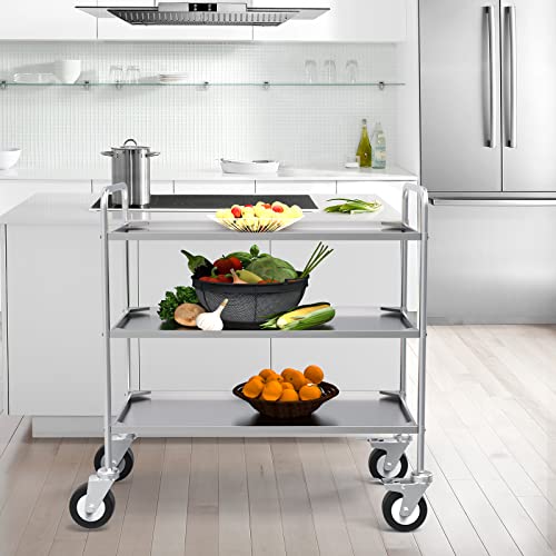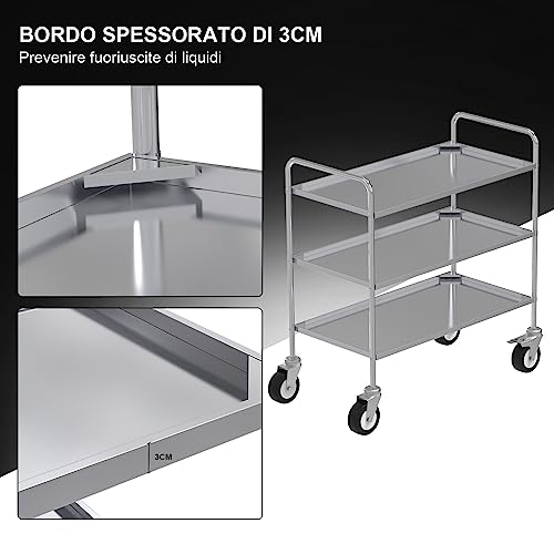 CTXGSOQ Carrello da Cucina in Acciaio INOX, Carrello Portavivande da Cucina con 4 Ruote a 360° e Freno, 3 Ripiani, Carrello per il Trasporto, Trolley Multiuso, Adatto per Hotel, Ufficio, Ospedale