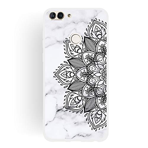 CUAgain Cover Compatibile per Huawei P Smart 2018 Silicone con Disegni Motivo Marmo Frase Gomma Antiurto Case Ultrasottile Resistente Protettiva Bumper Custodia Uomo Donna,Mandala A