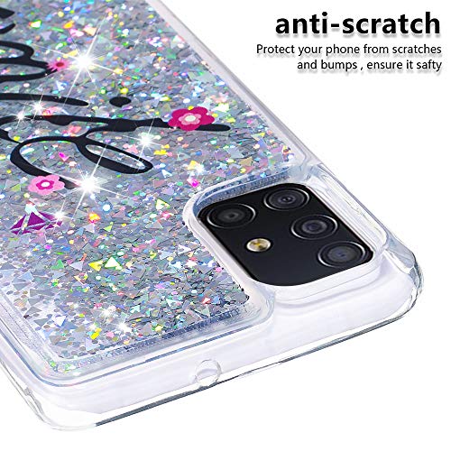 CUAgain Cover Compatibile per Samsung Galaxy A51 4G 2019 Glitter Liquido Trasparente Silicone 3D Disegni Antiurto Bling Case Transparent Cover Bumper Custodia per Donna Uomo Smile Argento
