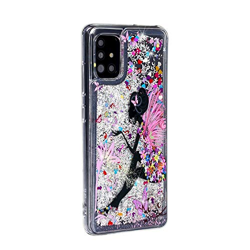 CUAgain Cover Compatibile per Samsung Galaxy A51 4G 2019 Glitter Liquido Trasparente Silicone 3D Disegni Antiurto Bling Case Transparent Kawaii Cover Bumper Custodia per Donna Uomo Ragazza/Farfalla